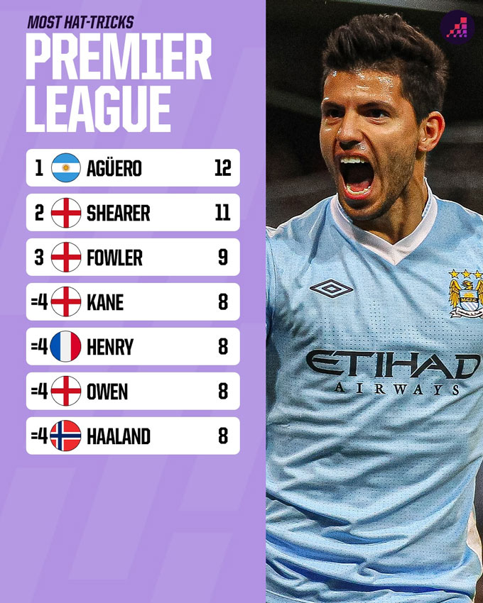 Một kỷ lục khác tại Premier League nhiều khả năng cũng sẽ bị chinh phục trong năm 2026: số hat-trick nhiều nhất lịch sử giải đấu. Và cái tên được nhắc đến không ai khác ngoài Erling Haaland.