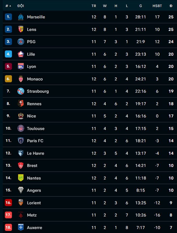 | Ligue 1 - Vòng 20 | |||