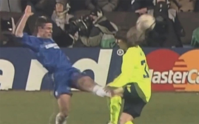 Đây được xem là pha ghi bàn kinh điển của “Rô vẩu”. Sau chiến thắng 2-1 trên sân nhà ở lượt đi vòng 1/8 Champions League 2004/05, Barca bước vào trận lượt về ở Stamford Bridge. Chỉ 19 phút đầu, The Blues dẫn trước 3-0. Tuy nhiên, Ronaldinho rút ngắn tỷ số xuống 1-2 trên chấm phạt đền cho Barca ở phút 27. Đến phút 38, siêu sao người Brazil có pha xử lý vô cùng ngẫu hứng đúng chất Nam Mỹ.