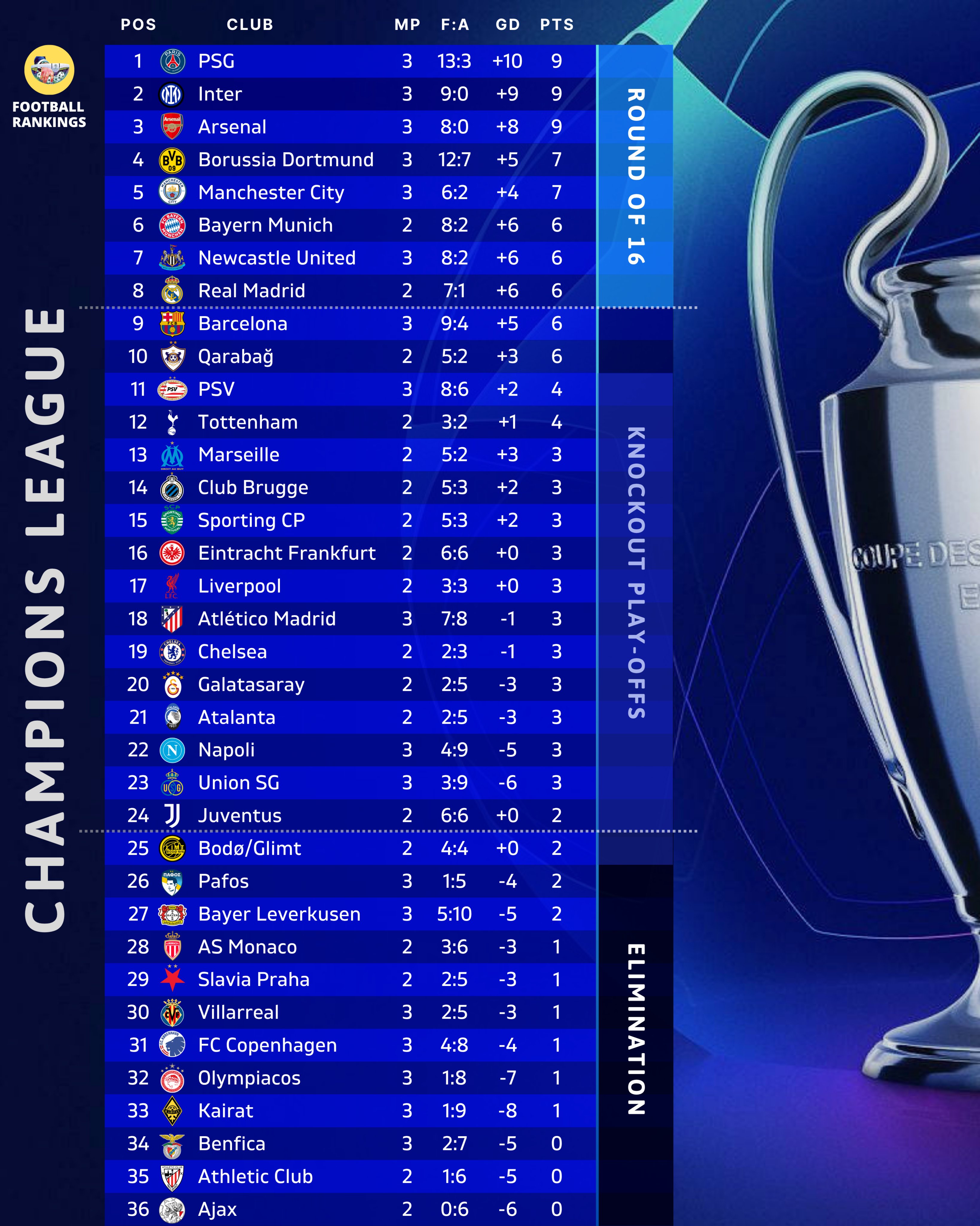 | TT | Đội bóng | Trận | +/- | Điểm |