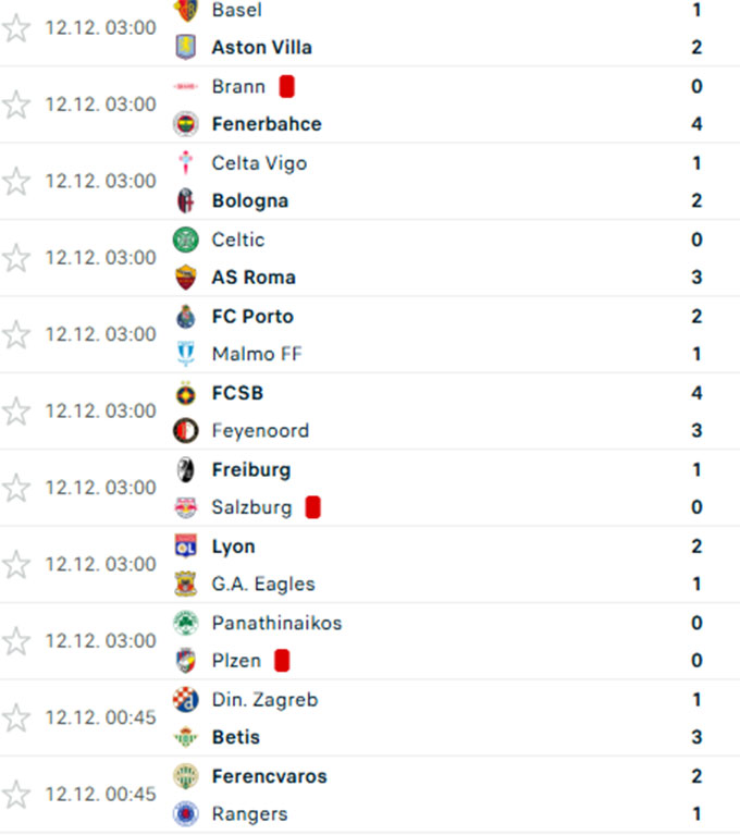 Ở một số cặp đấu đáng chú ý khác, Celta Vigo dù có lợi thế sân nhà lại để thua ngược Bologna 1-2. Cũng được chơi trước sự chứng kiến của đám đông khán giả nhà, Celtic còn gây thất vọng hơn khi thảm bại tới 0-3 dưới tay AS Roma.
