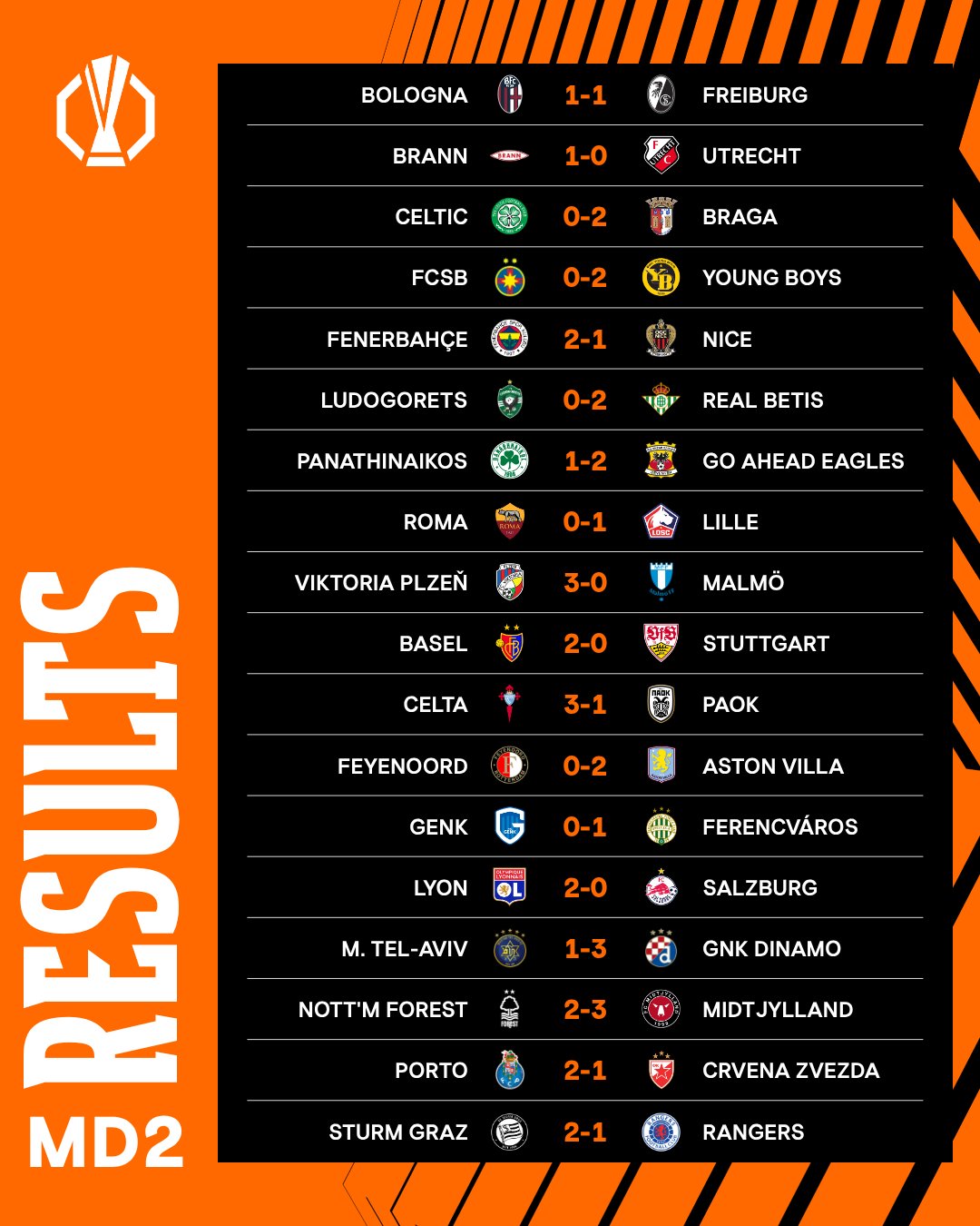 Chiều ngược lại, những CLB được đánh giá cao như Nottingham hay Roma, Celtic lại không có kết quả như ý. Cả 3 ứng viên vô địch này đều thua trước Midtjylland, Lille và Braga.