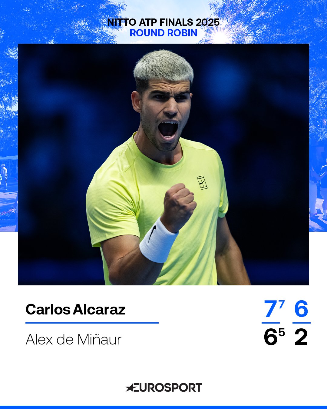 Như vậy, cả Alcaraz và Zverev đều dẫn đầu nhóm của mình với 1 trận thắng – một khởi đầu lý tưởng cho chặng chiến dịch khép lại mùa giải. Với màn trình diễn này, Alcaraz gửi tín hiệu mạnh mẽ cho tham vọng năm kết thúc ở vị trí số 1 thế giới, trong khi Zverev khẳng định anh vẫn là hạt giống đáng gờm tại giải đấu này.