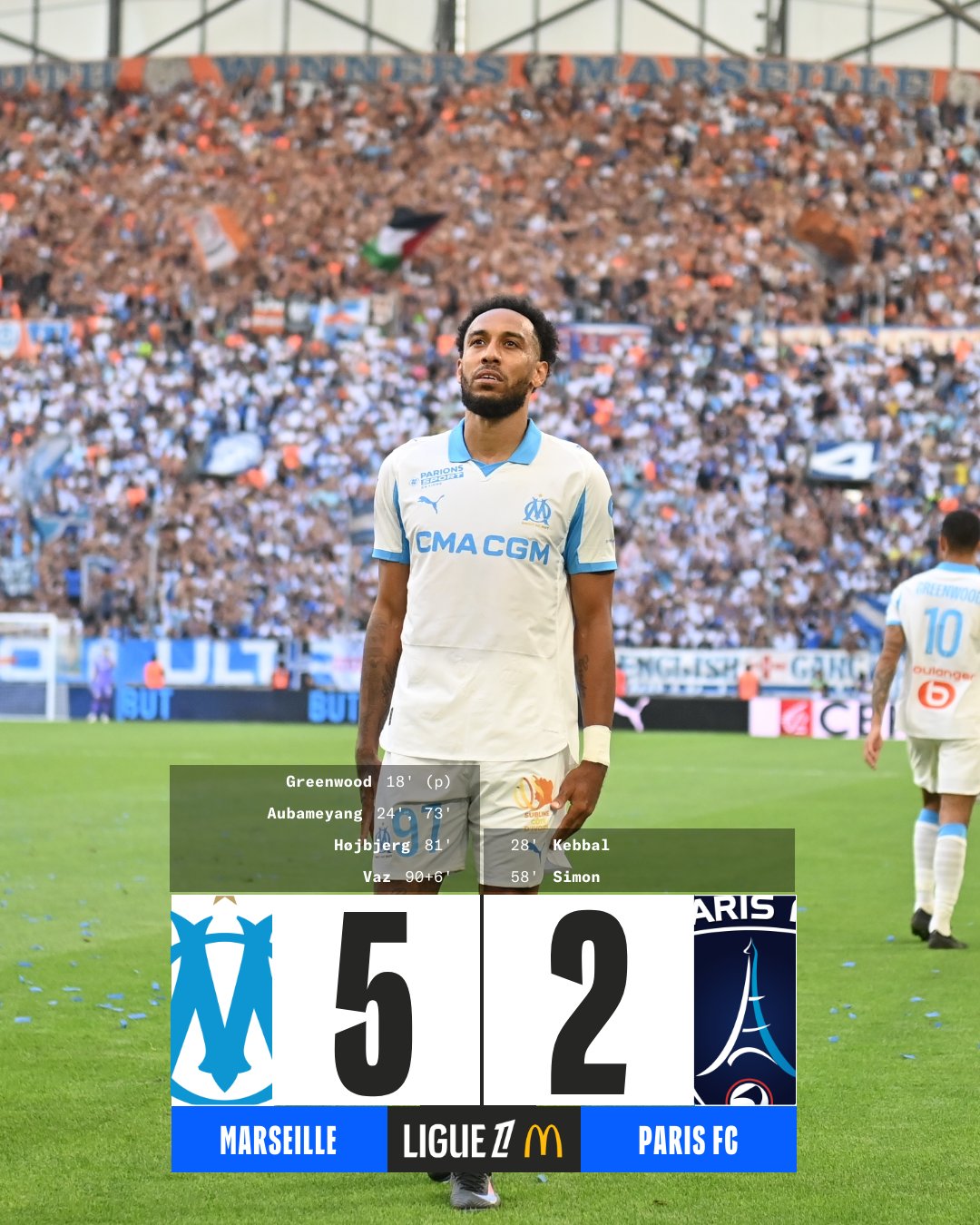 Tuy nhiên, đẳng cấp ngôi sao đã lên tiếng khi Marseille cần. Phút 73, Aubameyang hoàn tất cú đúp với cú sút cận thành, đưa Marseille tái lập thế dẫn bàn. Chỉ 8 phút sau, Pierre-Emile Hojbjerg dứt điểm đầy uy lực ngoài vòng cấm, bóng găm vào góc thấp khung thành, nâng tỷ số 4-2 cho Marseille.
