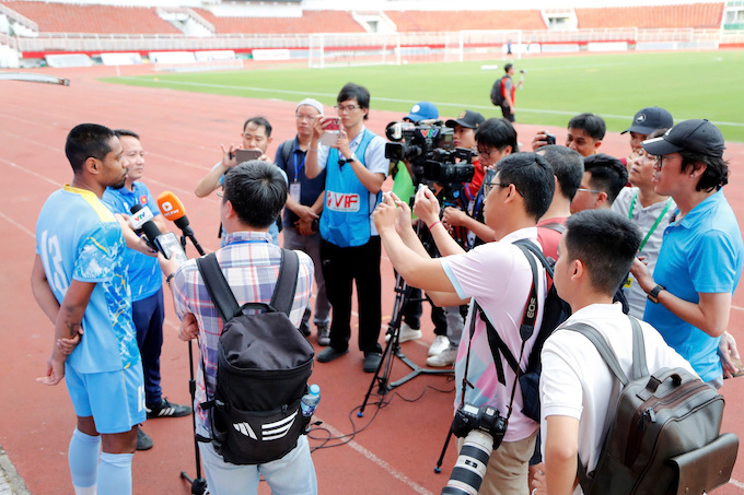 Trước câu hỏi, bạn nghĩ gì về trận đấu với Nepal vừa qua, Quang Vinh đã cho biết: “Nepal là đội mạnh về phòng ngự, họ phòng thủ rất chắc và phản công nhanh. Họ cũng cố gắng làm điều đó trong trận đấu vừa qua, nhưng chúng tôi đã chơi tốt hơn. Về phòng ngự, ĐT Việt Nam cũng làm tốt, nên tôi rất hài lòng về trận thắng vừa qua”.