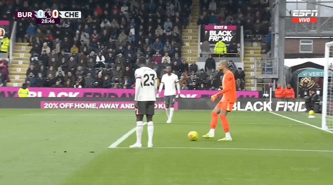 Hậu vệ này đã dùng tay chạm vào bóng để kiểm soát nó - rõ ràng tin rằng bóng chưa vào cuộc. Sau những phản đối từ các cầu thủ Burnley và Chalobah khẳng định mình vô tội, trọng T Peter Bankes đã đứng về phía đội khách và cho phép trận đấu tiếp tục.