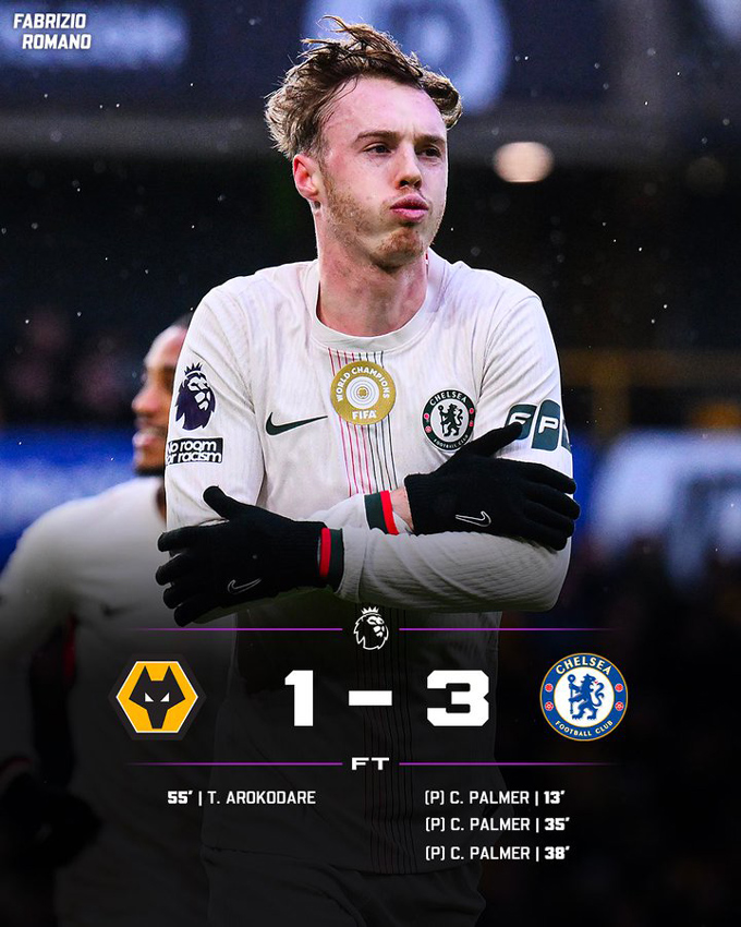 Chelsea chỉ phải gặp đội cuối bảng Wolves và tràn đầy hy vọng thắng trận thứ 4 liên tiếp ở Premier League dưới thời tân HLV Liam Rosenior. Phút 11, Doherty ngáng chân với Joao Pedro trong khu cấm địa và quả penalty được dành cho Cole Palmer, người sút chìm mở tỷ số.