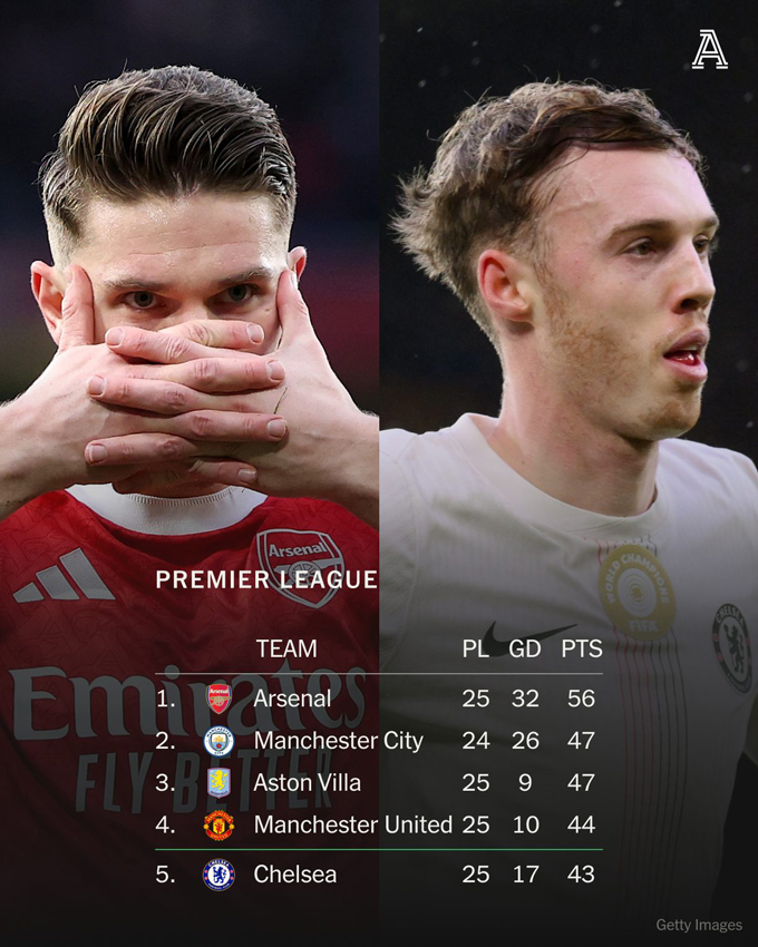 Tại vòng 25 Premier League 2025/26, trong khi MU và Chelsea cùng có chiến thắng đậm thì Aston Villa lại bị cầm hòa. Điều này khiến cuộc đua top 4 đang hết sức nóng bỏng.