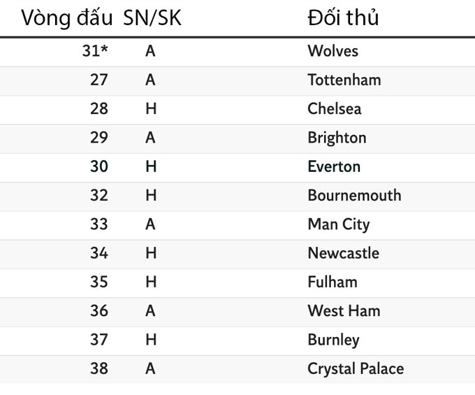 Trên lý thuyết, điều đó có vẻ thuận lợi cho Arsenal. Trong tháng Năm, họ sẽ tiếp Fulham và Burnley trên sân nhà xen kẽ hai trận gặp West Ham và Palace trên sân khách.