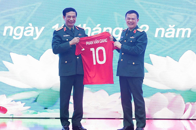 Đại diện CLB Thể Công Viettel cũng trân trọng gửi tặng Đại tướng Phan Văn Giang gồm cúp và áo đấu, trái bóng có chữ ký của cả đội, thể hiện lời tri ân sâu sắc trước sự quan tâm, chỉ đạo và động viên kịp thời dành cho tập thể đội bóng.