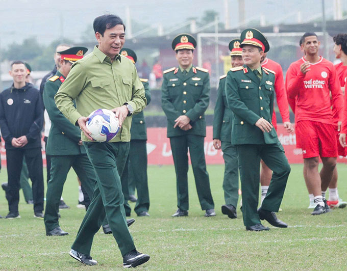 Trong khuôn khổ chương trình, Đại tướng Phan Văn Giang dành thời gian gặp mặt, động viên CLB Thể Công Viettel ngay tại sân bóng của đội. Bộ trưởng thăm hỏi, trao đổi với ban huấn luyện, cầu thủ và đại diện các bộ phận chuyên môn, nắm tình hình tập luyện, thi đấu và công tác quản lý, đào tạo của đội bóng.