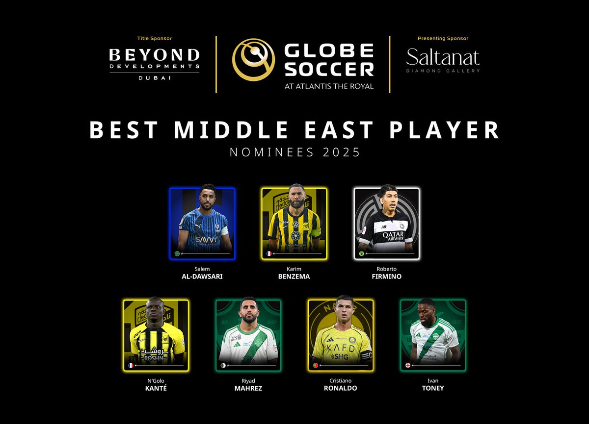 Trong khi đó, siêu sao Cristiano Ronaldo của CLB Al Nassr nằm trong danh sách ứng viên cho giải cầu thủ xuất sắc nhất Trung Đông. Đối thủ của Ronaldo sẽ là những Karim Benzema, N'Golo Kante (đều là thành viên của Al Ittihad), Salem Al-Dawsari (Al Hilal), Roberto Firmino (Al Ahly)...