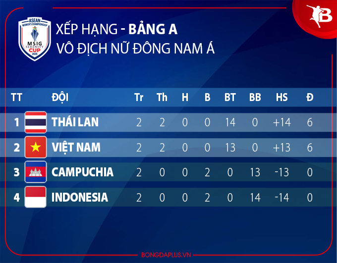 ĐT nữ Indonesia 0–7 ĐT nữ Việt Nam: Thắng đậm, nhưng ĐT nữ Việt Nam vẫn đứng nhì bảng A