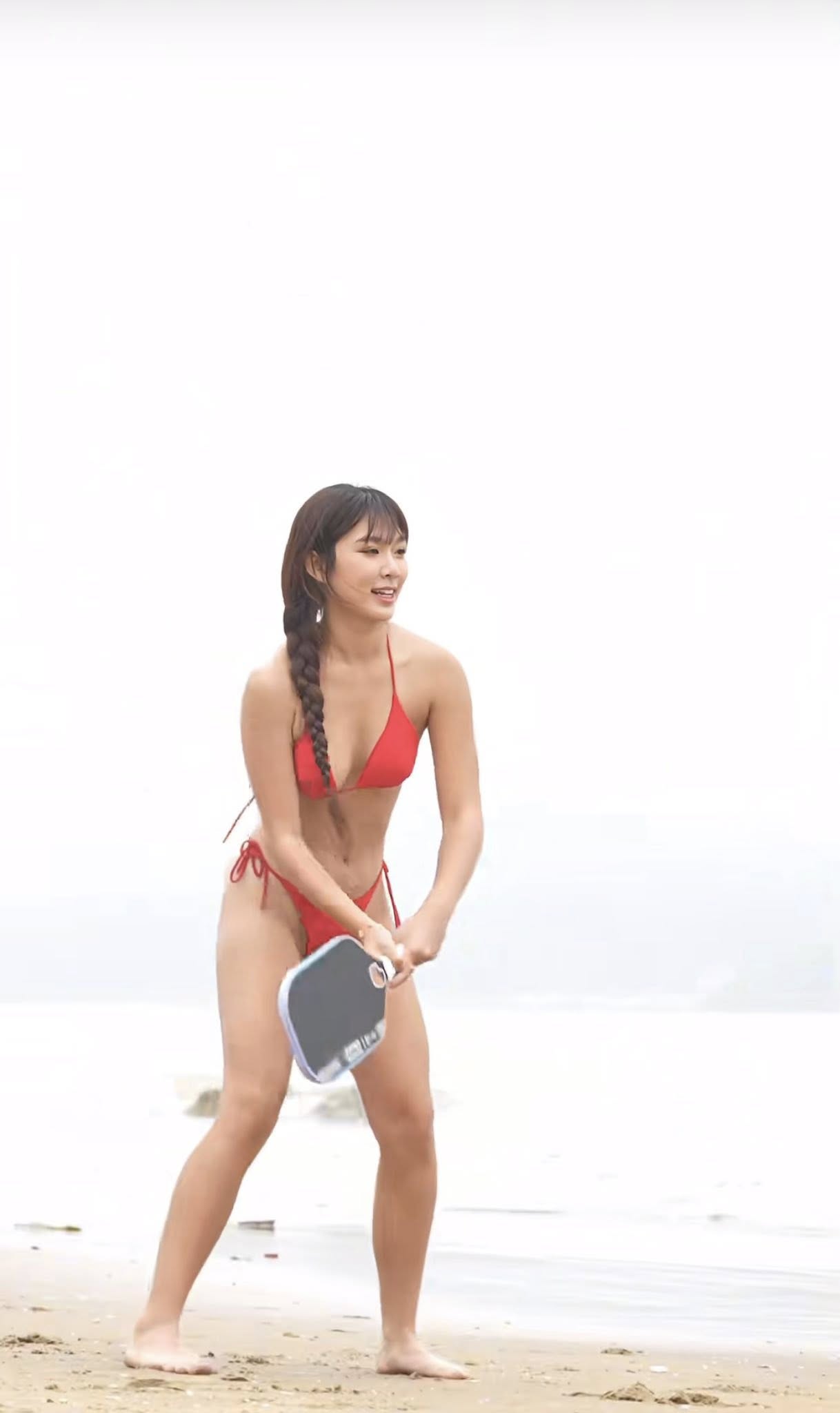 Em Kim vén váy lại gây sốt khi mặc bikini chơi pickleball trên biển