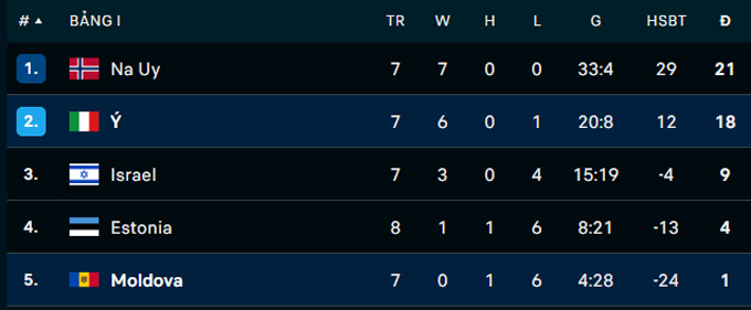 Kết quả này giúp thầy trò Stale Solbakken gần như sẽ góp mặt tại ngày hội bóng đá lớn nhất hành tinh – lần đầu tiên kể từ năm 1998. Hiện tại, Na Uy có 21 điểm, hơn Italia 3 điểm cùng hiệu số vượt trội (29 so với 11). Ở lượt trận cuối, Italia sẽ gặp Na Uy.