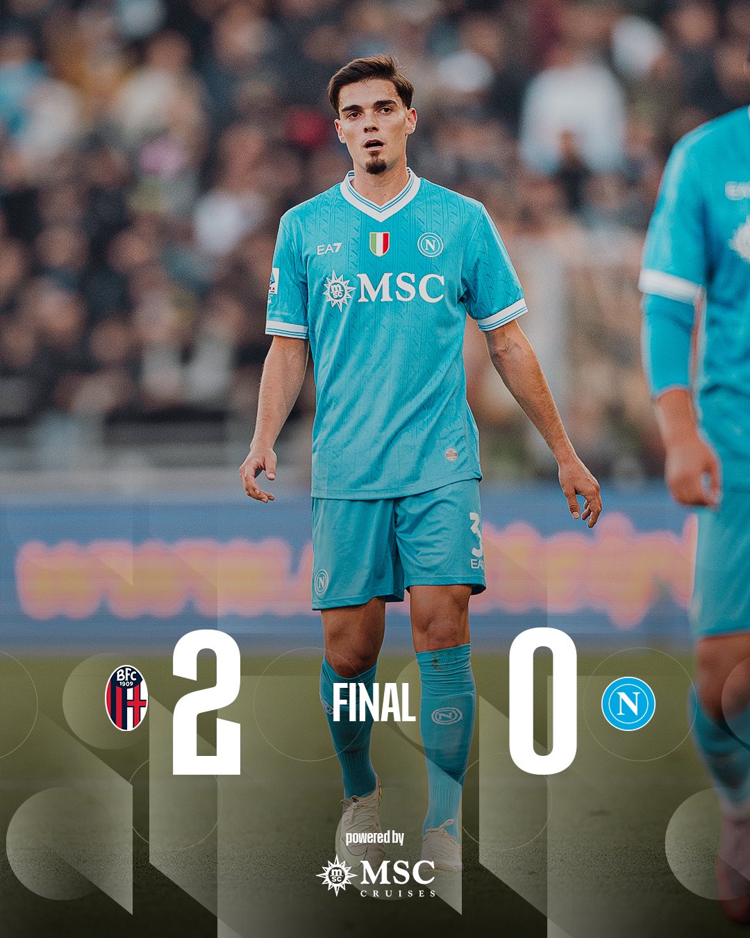 Không những không thể ghi bàn gỡ hòa, Napoli còn phải nhận thêm bàn thua nữa ở phút 66. Trung vệ Jhon Lucumi là người đã bật cao đánh đầu, ấn định thắng lợi 2-0 cho Bologna