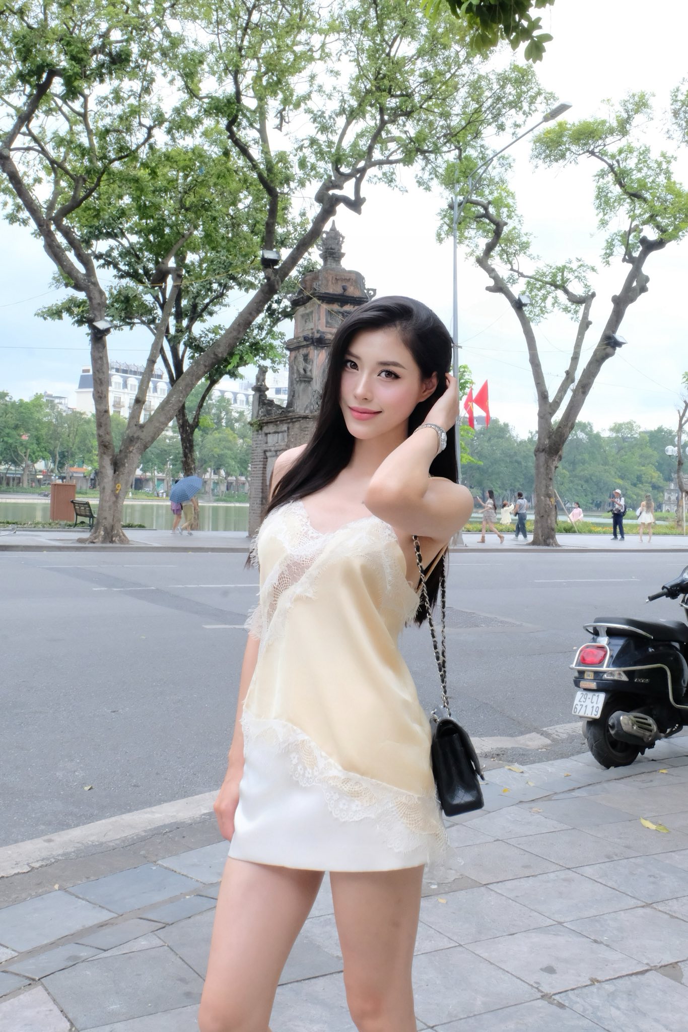 Mới đây, cô khiến các fan thẫn thờ khi đi xuất hiện với hình ảnh đời thường giản dị nhưng khéo khoe đôi chân dài miên man và vóc dáng khiến cánh chị em phải mơ ước. Đi kèm theo đó là dòng trạng thái "lãng mạn" ở thủ đô Hà Nội.