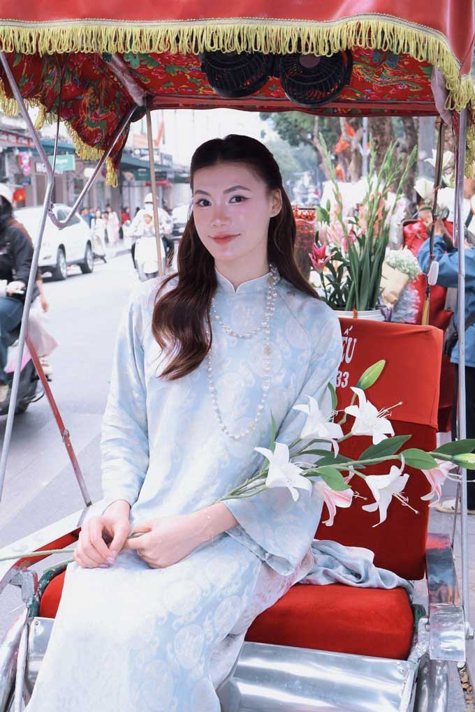 Những hình ảnh áo dài dịu dàng đón Tết của cô trên mạng xã hội đã thu hút hàng nghìn lượt tương tác, nhiều người bày tỏ sự yêu mến trước vẻ đẹp trong sáng, truyền thống nhưng không kém phần hiện đại.