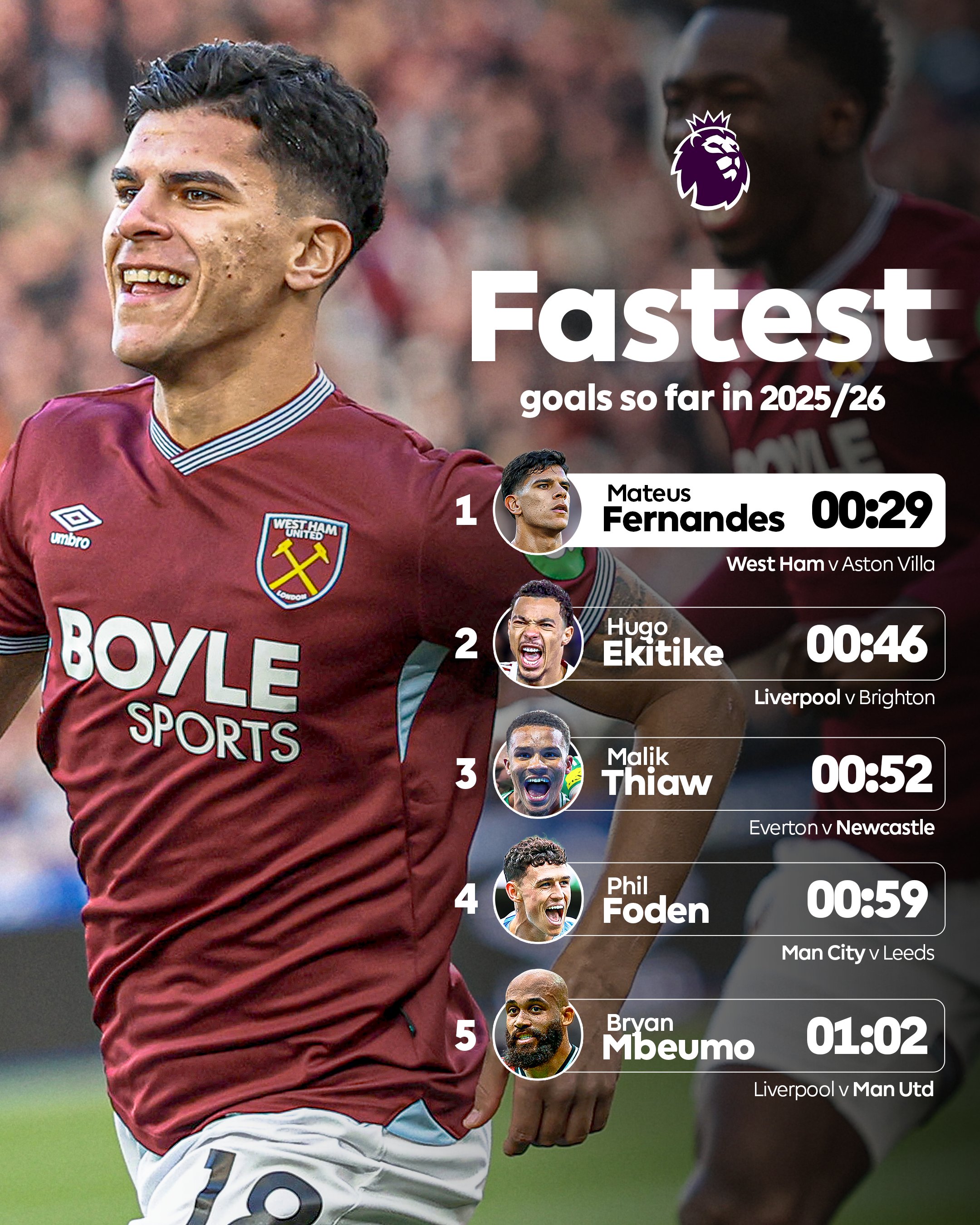 Thành tích của Fernandes nhanh hơn Ekitike tới 19 giây, thiết lập một cột mốc mới rất khó bị đánh bại trong phần còn lại của mùa giải. Đây cũng là bàn thắng sớm nhất lịch sử West Ham tại Ngoại hạng Anh, đồng thời là bàn thua sớm nhất mà Aston Villa từng phải nhận.