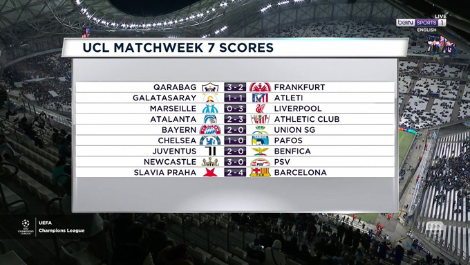 Ở các trận đấu còn lại, Qarabag đã bất ngờ đánh bại Frankfurt với tỷ số 3-2 còn Atalanta để thua Athletic Bibao 2-3 ngay trên sân nhà.