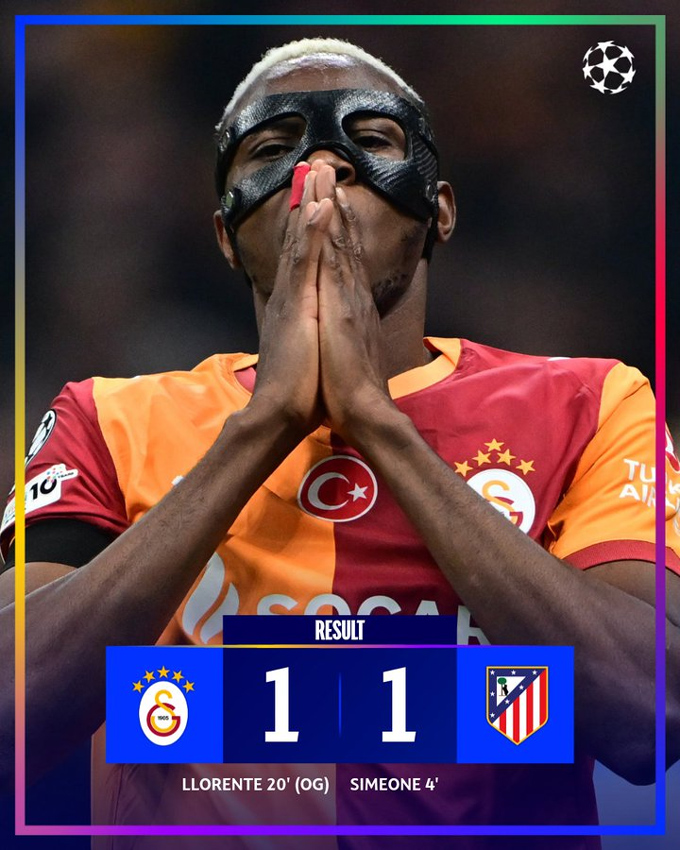 1-1 là tỷ số chung cuộc của trận đấu này. Với kết quả này, Atletico có 13 điểm sau 7 trận và hoàn toàn có thể giành vé vào vòng 1/8 nếu giành chiến thắng trên sân nhà trước Bodo/Glimt ở lượt cuối vào giữa tuần tới. Trong khi đó, Galatasaray có 10 điểm và cần đánh bại Man City trên sân Etihad ở lượt trận cuối để chắc chắn giành quyền vào vòng play-off, dù một trận hòa vẫn có thể đủ, tùy thuộc vào kết quả các trận khác.