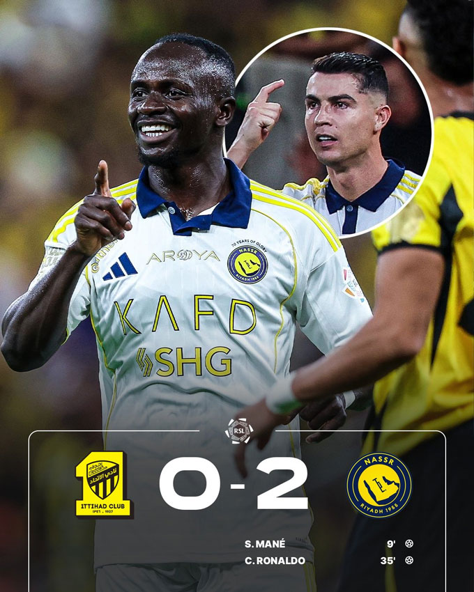 Al Nassr: Mane (9'), Ronaldo (35')