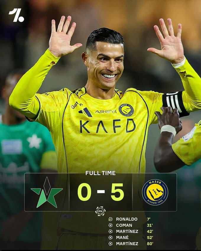 Al Nassr: Ronaldo (7'-pen), Coman (31'), Martinez (42', 80'), Mane (52')