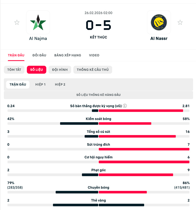 Sau khi để cho Al Ahli tạm chiếm ngôi đầu, Al Nassr đã nhanh chóng đòi lại. Bước vào trận đấu gặp đội bét bảng Al Najma, Al Nassr tràn lên tấn công ngay từ những phút đầu và sớm có cơ hội mở tỷ số khi được trao quả penalty sau tình huống phạm lỗi không cần thiết của Al Hawsawi bên phía Al Najma. Ronaldo không mắc sai lầm nào, dứt điểm đầy uy lực khiến thủ môn đối phương hoàn toàn bó tay.