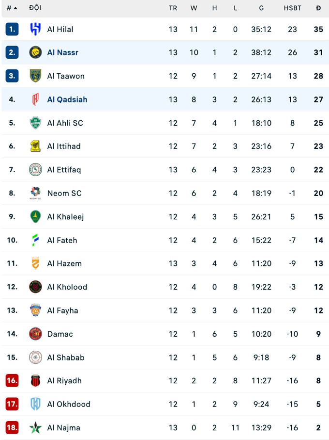 Đội hình thi đấu Al Nassr vs Al Qadsiah