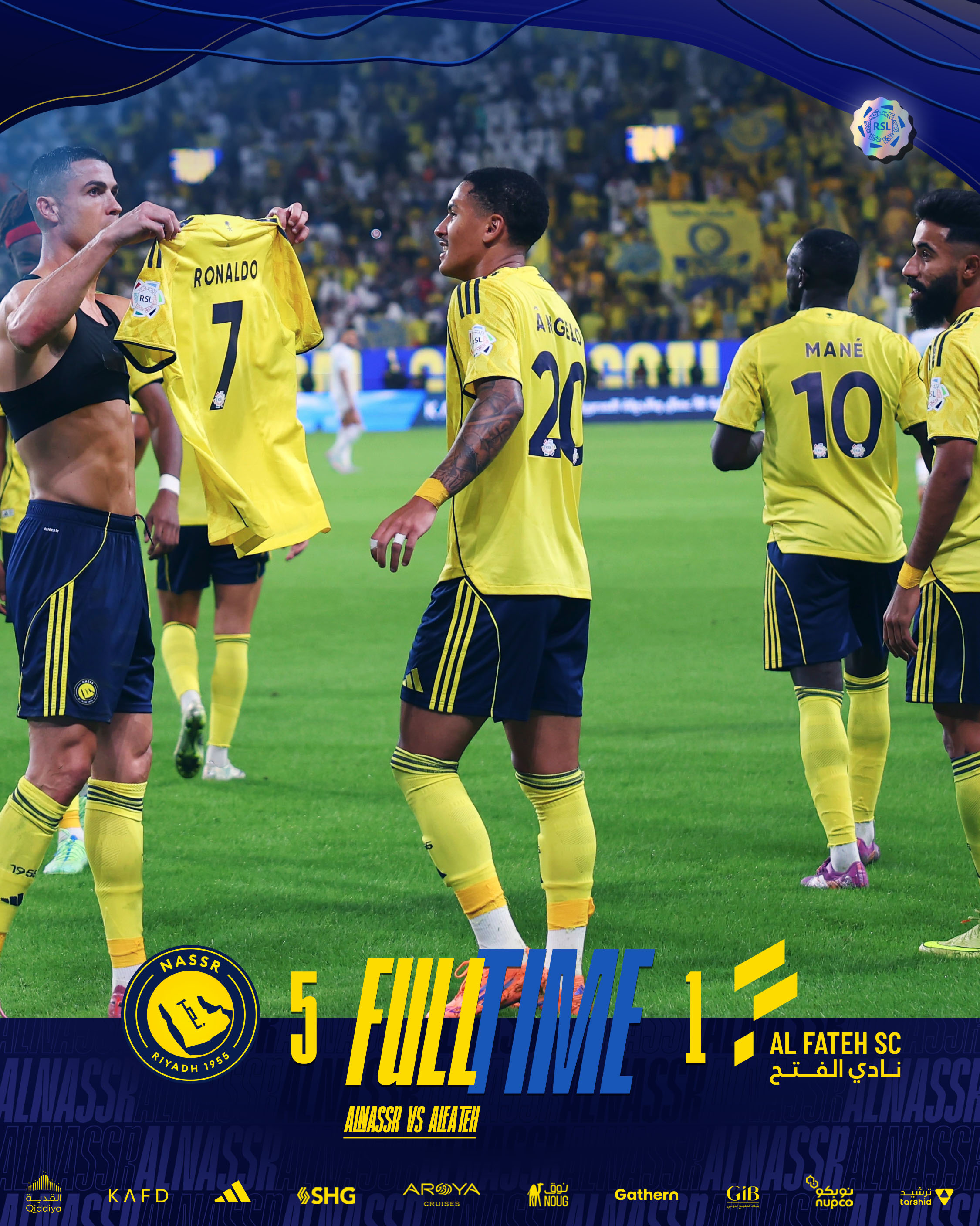 Al Nassr: Al Aqidi, AL Ghannam, Simakan, Martinez, Boushal, Coman, Brozovic, Mane, Angelo, Felix, Ronaldo