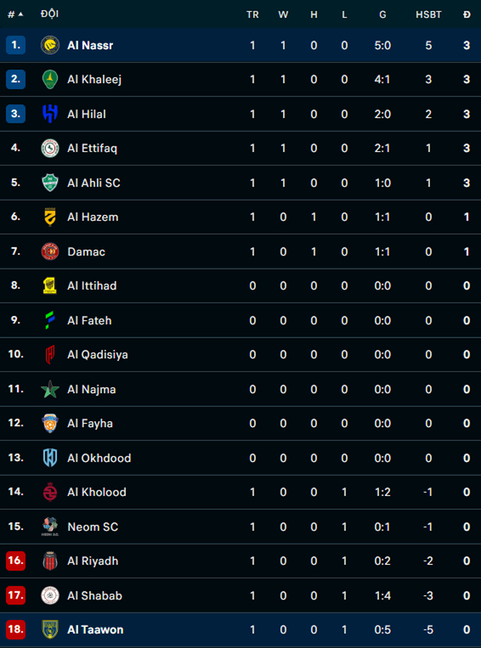 Đội hình thi đấu Al Taawon vs Al Nassr