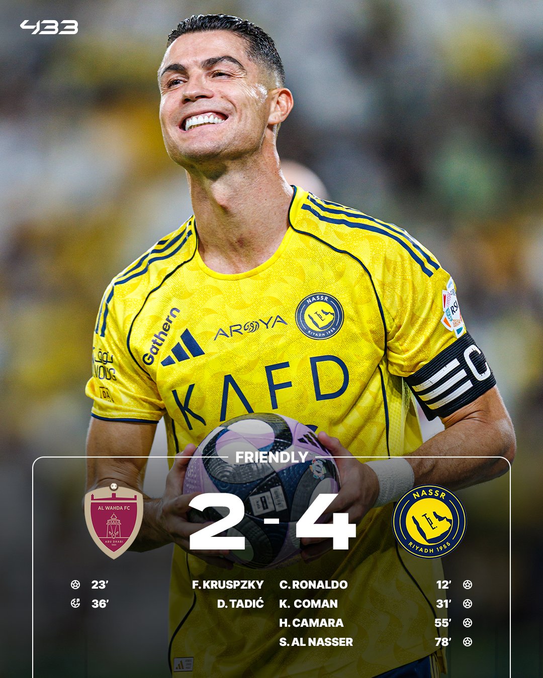 Al Nassr: Ronaldo (12'), Coman (31'), Camara (55'), Al Nasser (78')