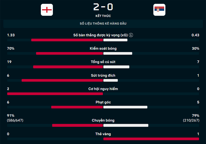 Nhưng đến phút 90 hy vọng có điểm của Serbia chấm dứt, ĐT Anh phản công nhanh để rồi Foden mớm bóng cho Eze đặt lòng đẹp mắt vào góc hiểm cột xa. Thắng 2-0, ĐT Anh vẫn toàn thắng ở vòng loại và chưa lọt lưới bàn nào. Chiều ngược lại, Serbia sẽ làm khán giả ở kỳ World Cup 2026.