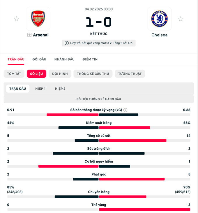 Kết quả cuối cùng của trận đấu này là 1-0 nghiêng về phía Arsenal. Pháo thủ giành vé vào chung kết League Cup và chờ đợi đối thủ là đội thắng trong cặp Man City vs Newcastle.