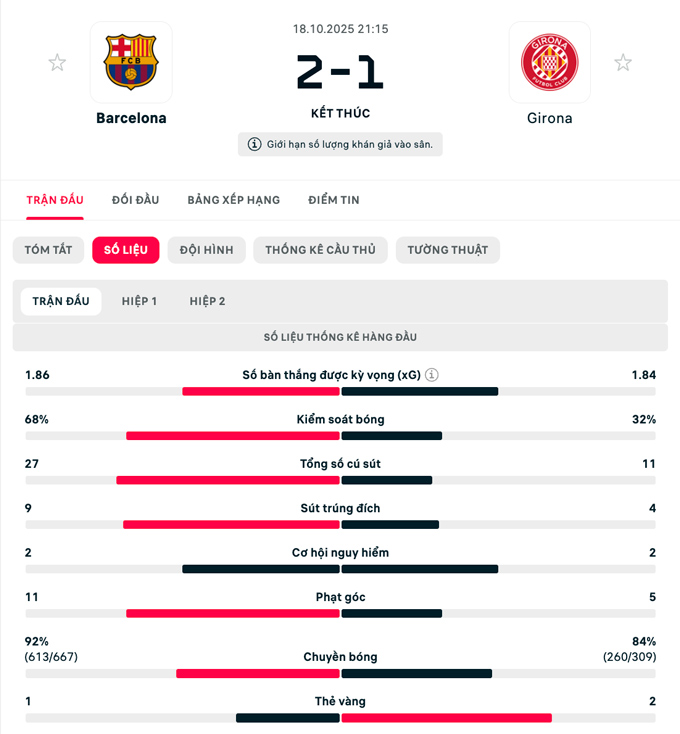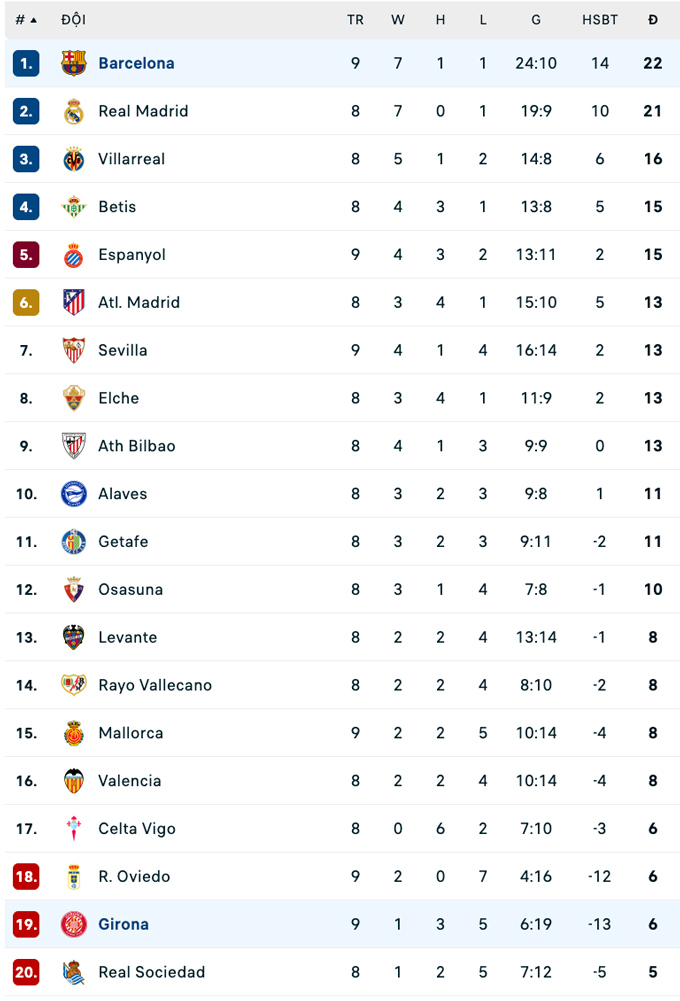 Đội hình thi đấu Barca vs Girona