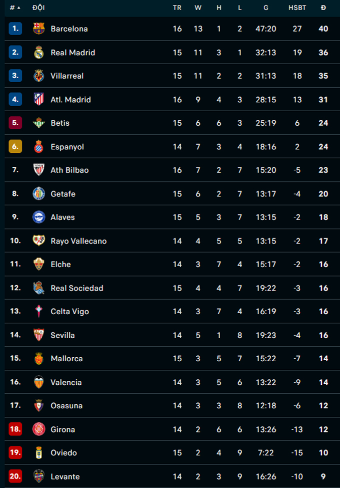 | La Liga - Vòng 22 | |||