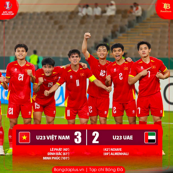 ĐT U23 Việt Nam đã xuất sắc đánh bại ĐT U23 UAE tại trận tứ kết U23 châu Á với tỷ số 3-2, qua đó chính thức giành quyền vào bán kết.