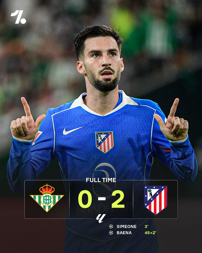 Ở trận đấu muộn vòng 10 La Liga 2025/25, Atletico đã đánh bại Real Betis của Antony với tỷ số 2-0 để chiếm vị trí thứ 4 trên BXH. Trong khi đó, Betis vẫn đứng thứ 6.