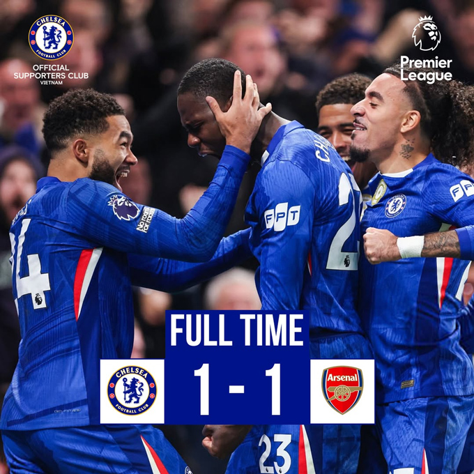 Ở trận cầu tâm điểm giữa Chelsea vs Arsenal, hai đội đã cầm hoà nhau với tỷ số 1-1. Đáng chú ý, Chelsea dù phải thi đấu thiếu người do Caicedo nhận thẻ đỏ ở phút 34 nhưng vẫn đứng vững để có được 1 điểm.