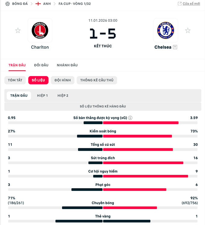 Chiến thắng đậm đà này không chỉ giúp Chelsea giành vé vào vòng tiếp theo của FA Cup, mà còn đánh dấu cột mốc đáng nhớ với Liam Rosenior. Ông trở thành HLV Chelsea đầu tiên kể từ Antonio Conte năm 2016 giành chiến thắng ngay trong trận ra mắt.