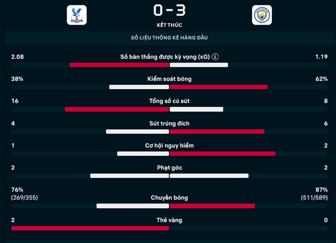 Cơ hội tới tay Haaland và anh sút penalty thành công, ấn định thắng lợi 3-0 cho Man City. Với kết quả này, Man City có 34 điểm, chỉ còn kém đội đầu bảng Arsenal đúng 2 điểm.