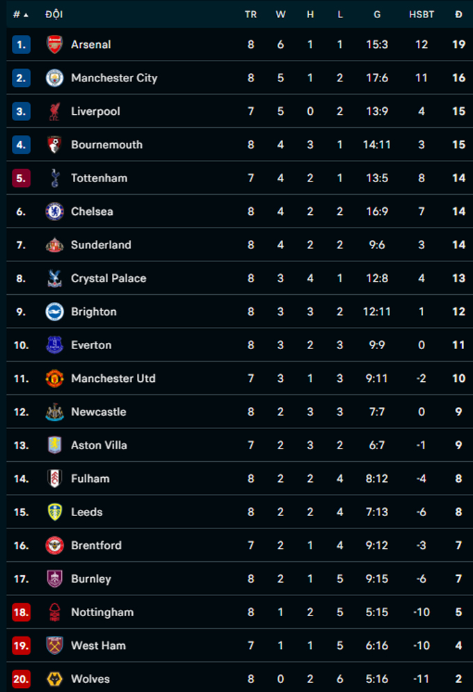 Như vậy, Arsenal tiếp tục dẫn đầu BXH Ngoại hạng Anh, tạm nới rộng khoảng cách lên 3 điểm so với ĐKVĐ Liverpool. Giờ là lúc chờ xem Liverpool sẽ đáp trả ra sao trong trận tiếp đón MU vào tối nay (19/10). Với Fulham, thất bại thứ ba liên tiếp khiến họ rơi xuống vị trí thứ 14 trên bảng xếp hạng.