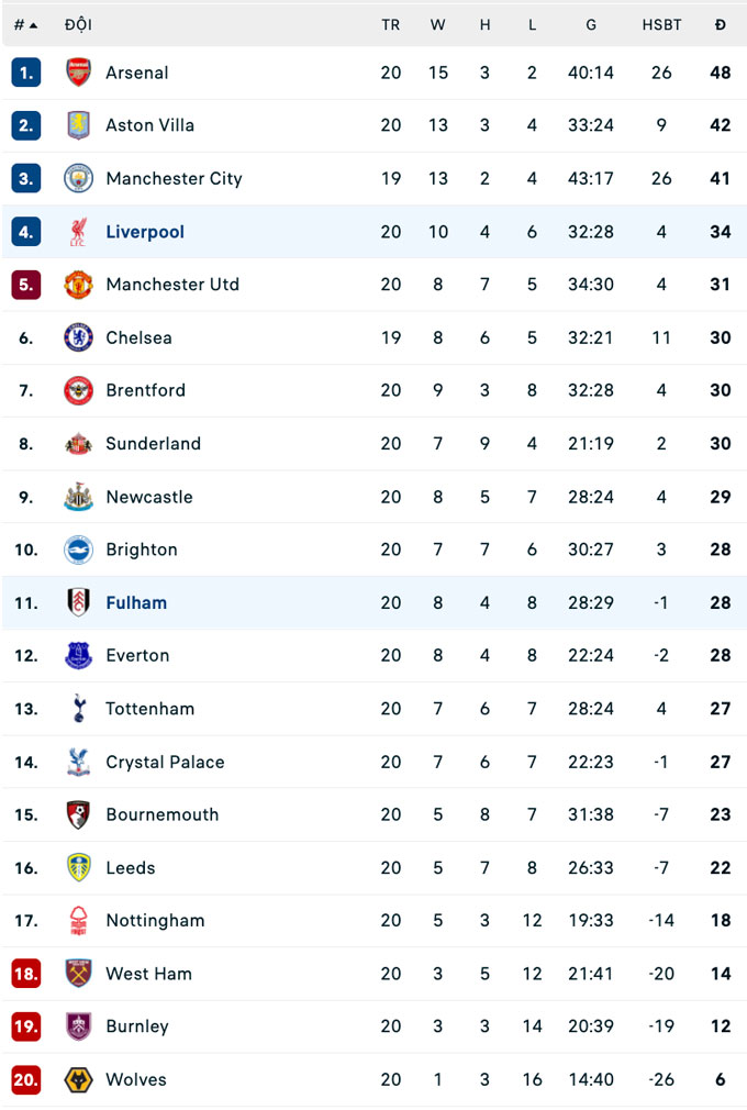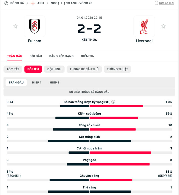 Kết quả cuối cùng của trận đấu là 2-2. Liverpool vẫn dậm chân ở vị trí thứ 4 trên BXH.