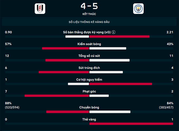 Kết quả Fulham 4-5 Man City: 3 điểm nghẹt thở của Man City