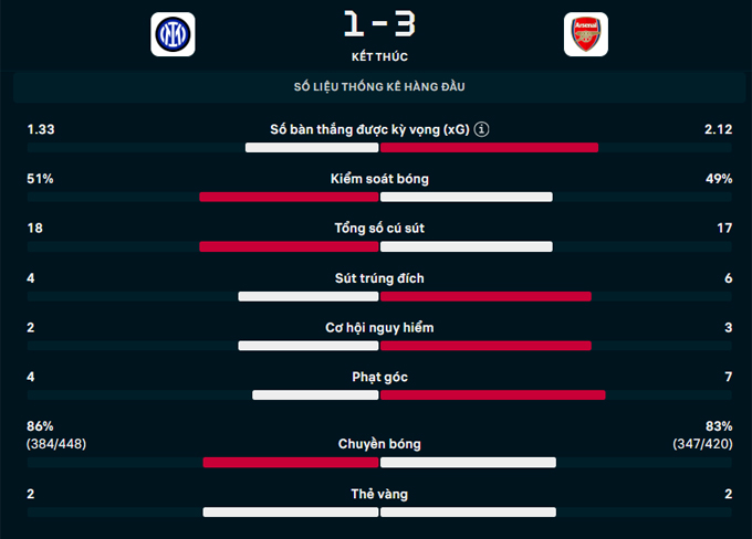 Kết quả Inter 1-3 Arsenal: Pháo thủ toàn thắng ở Champions League
