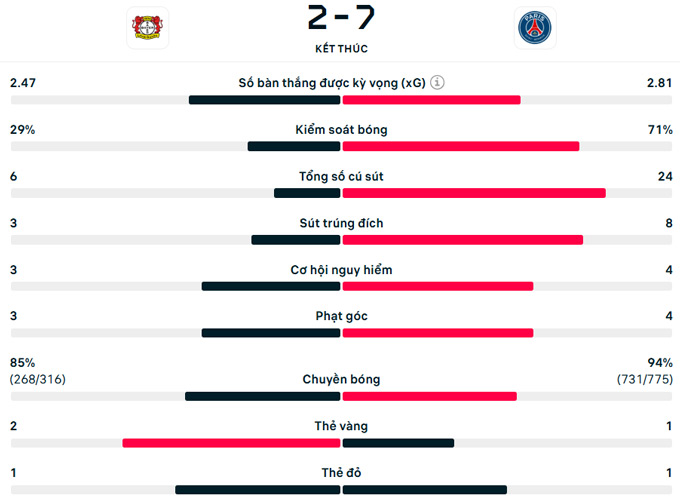 Kết quả Leverkusen 2-7 PSG: Trận cầu điên rồ