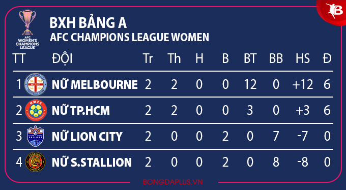 Ở trận đấu sớm của bảng A giữa Stallion Laguna – Melbourne City, đội bóng đến từ Úc châu đã chứng tỏ sức mạnh vượt trội khi thắng đậm đến 7-0 trước đối thủ Stallion Laguna, qua đó đã giành chiếc vé đầu tiên của bảng A để có mặt ở vòng knock out. Vì thế, đây càng là áp lực cho cô trò HLV Đoàn Thị Kim Chi trong cuộc đối đầu với Lion City diễn ra sau đó, dẫu đối thủ không quá mạnh.