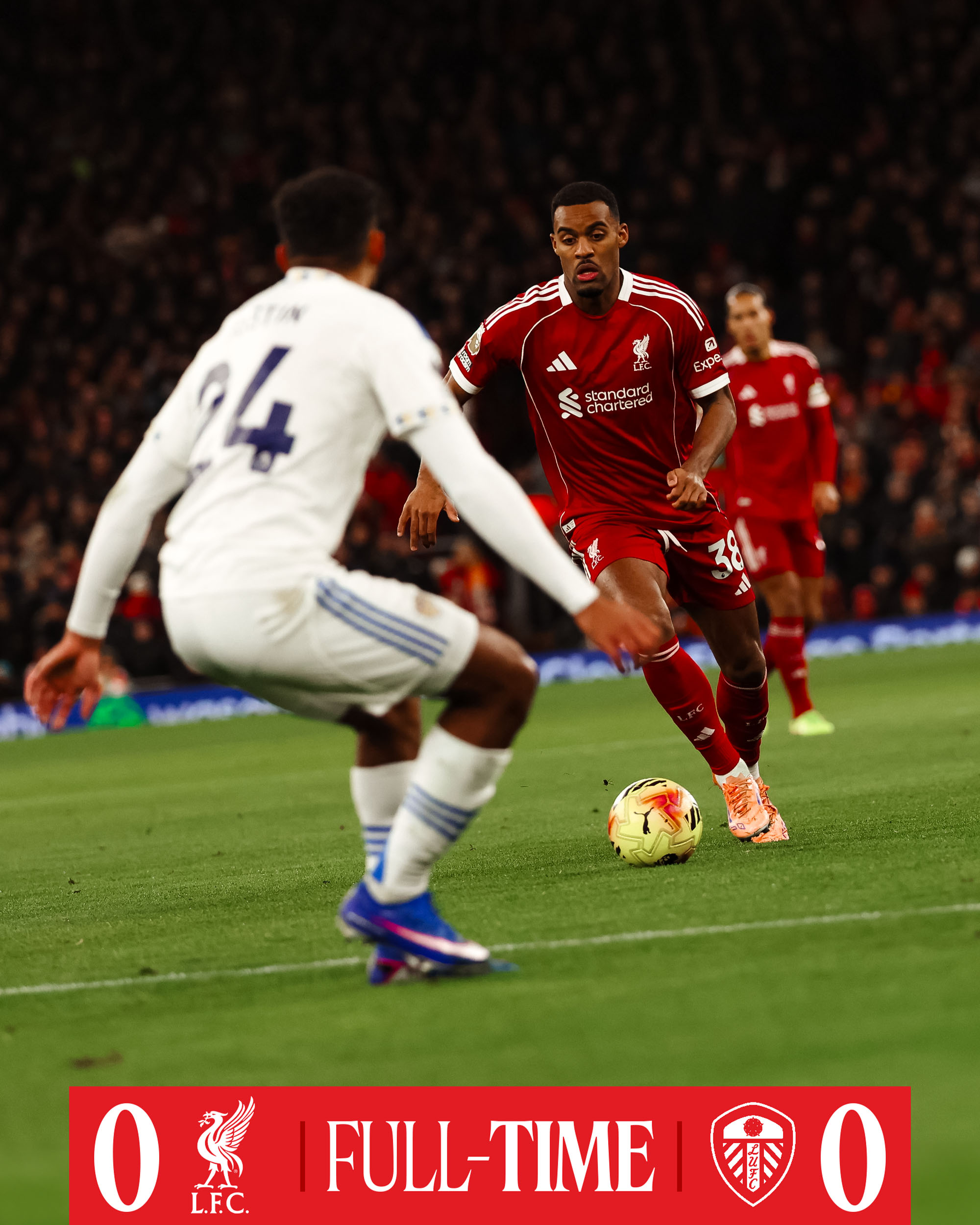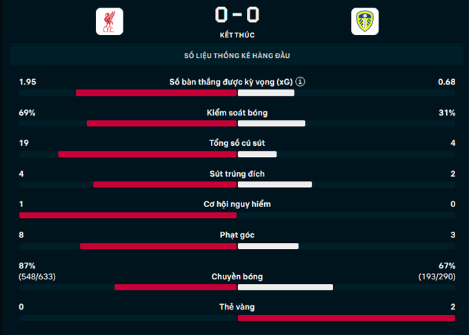 Cuối trận, Liverpool hãm thành liên tục nhưng các cầu thủ Leeds đầy nỗ lực che chắn để bảo vệ thành công cầu môn mà không cần thủ môn Perri làm việc. Hòa 0-0, Leeds bất bại trận thứ 6 liên tiếp trong khi Liverpool lỡ cơ hội bám theo Aston Villa trên BXH Ngoại hạng Anh 2025/26.