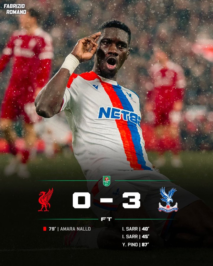 Kết quả này giúp Palace vượt qua vòng 4 League Cup trong khi Liverpool ngậm ngùi dừng bước. Ngoài ra, đây còn là chiến thắng thứ 3 liên tiếp của Đại bàng trước Liverpool ở mùa giải 2025/26.