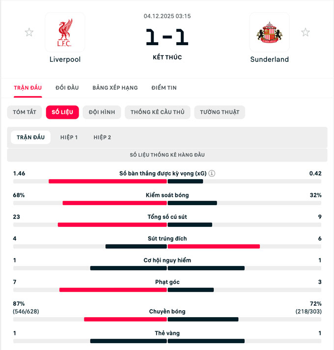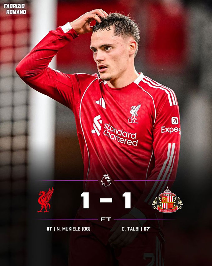 Bước sang hiệp 2, Liverpool lần lượt tung các ngôi sao tấn công khác vào sân như Salah, Ekitike hay Chiesa. Tuy nhiên, họ mới là đội bị thủng lưới trước.